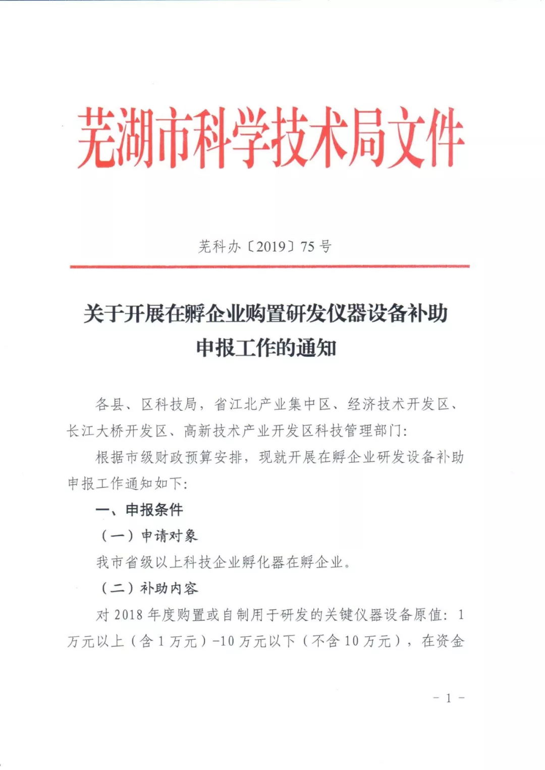 關于開展在孵企業購置研發儀器設備補助申報工作的通知