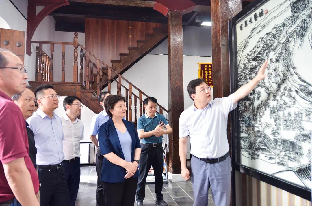 ? 調研組一行首先來到園區(qū)益新面粉大樓,園區(qū)功能性黨委書記、總經理卞國琛在鐵畫作品《百年大礱坊》前向調研組介紹百年前蕪湖青弋江兩岸繁榮興盛的景象,講解益新面粉廠131年的風雨歷程,以及大樓如何整修與保護。調研組在大樓四樓駐足觀賞原華中師范大學校長章開沅老先生的題詞,上面寫道:“飲水思源,日新又新”“百年益新面粉廠,日新礱坊科技園”。